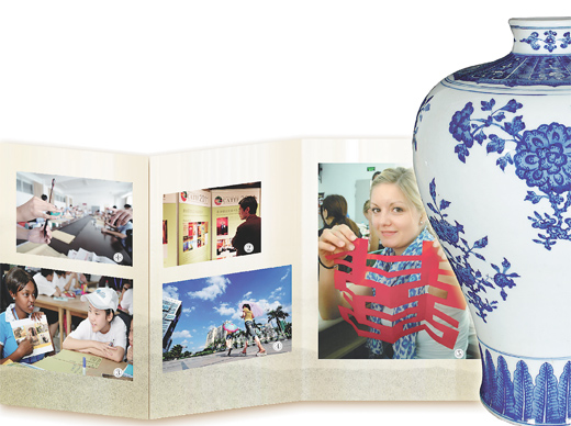 图⑤:孔子学院的外国学生展示亲手剪出的剪纸作品。傅军摄