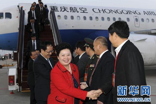 11月5日,出席中国共产党第十八次全国代表大会的重庆代表团代表抵达北京。新华社记者谢环驰摄