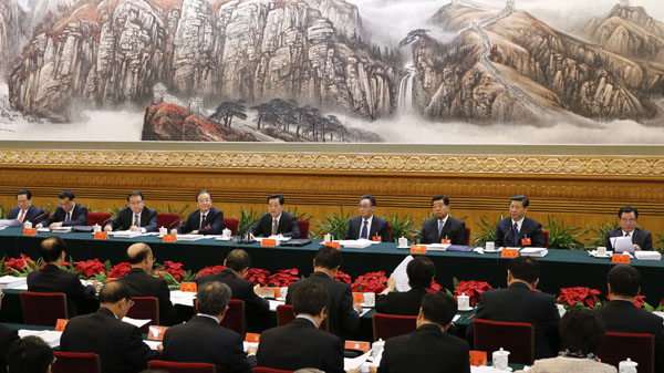 11月10日,中国共产党第十八次全国代表大会主席团在北京人民大会堂举行第二次会议。胡锦涛、吴邦国、温家宝、贾庆林、李长春、习近平、李克强、贺国强、周永康等出席会议。新华社记者鞠鹏摄