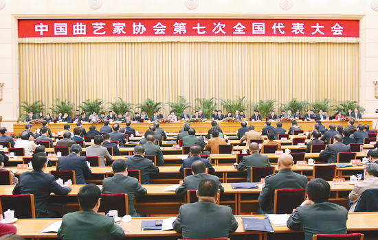 在全党全国各族人民深入学习贯彻党的十八大精神,满怀信心朝着全面建成小康社会新目标和全面推进改革开放新征程阔步前进的大好形势下,11月27日,中国曲艺家协会第七次全国代表大会在北京开幕。来自全国各省、自治区、直辖市和新疆生产建设兵团、解放军、中央国家机关以及港澳地区的400余名曲艺工作者代表参加会议。