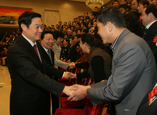 11月27日,中国曲艺家协会第七次全国代表大会在京开幕。中共中央政治局委员、中央书记处书记、中宣部部长刘奇葆(左一)亲切接见与会代表。中国艺术报记者 孟祥宁 摄