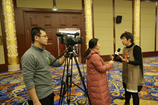 12月3日,中国电视艺术家协会第五次全国代表大会在京召开。图为中国文艺网记者现场采访于丹。