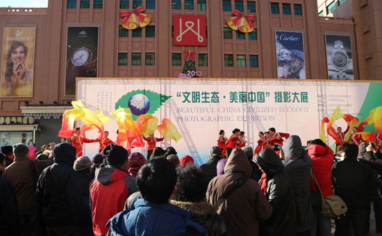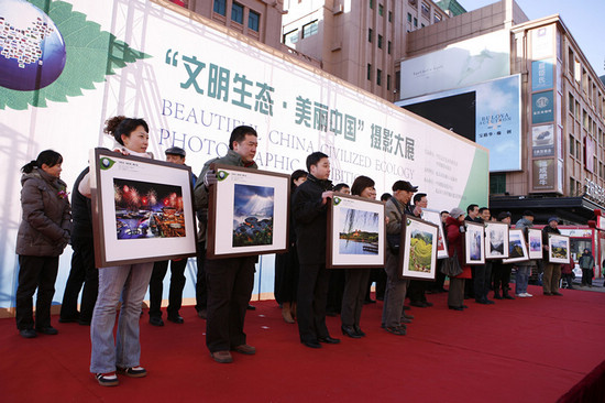 为了更好地学习宣传贯彻党的十八大精神,由中国文联、中国摄协主办的“文明生态 美丽中国”摄影大展12月5日在北京王府井步行街精彩亮相。参展的116幅作品,是从近年来国际国内各类重量级影展获奖作品中严格遴选而来的,地域涵盖全国31个省区市及港澳台地区,题材涉及自然、经济、社会各个方面,参展的作者中,既有著名的摄影家,也有普通的摄影爱好者。通过摄影人不同的视角,展示了伟大祖国的自然环境之美、人文社会之美,展示了天蓝、地绿、水净的美好家园,用辩证发展的眼光谱写了一幅建设中的“美丽中国”全景图。