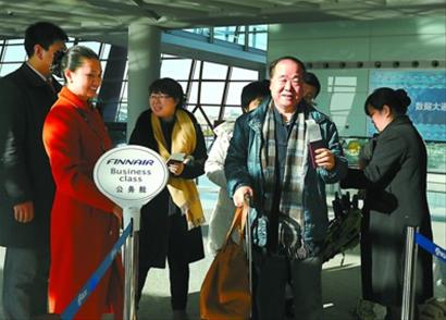 当日,2012年诺贝尔文学奖得主莫言携家人及朋友从北京首都国际机场出发,前去瑞典领取诺贝尔文学奖。