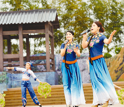 12月16日,演员在表演歌伴舞《打支山歌过横排》。