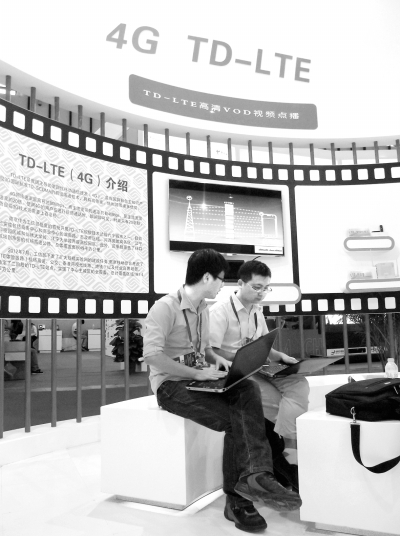 观众在南京软博会现场体验4G高清VOD视频点播通信服务。新华社发