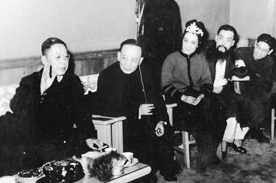 1956年,北京人民艺术剧院上演历史剧《虎符》时,郭沫若同主要创作人员一起交谈。