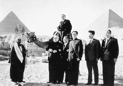 1957年,郭沫若率中国代表团出席在埃及开罗举行的亚非团结大会,会后在金字塔前留影。