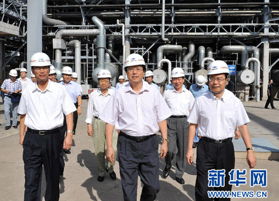 2008年9月2日,张德江调研燕山石化公司生产经营工作。 新华社记者 刘建生摄