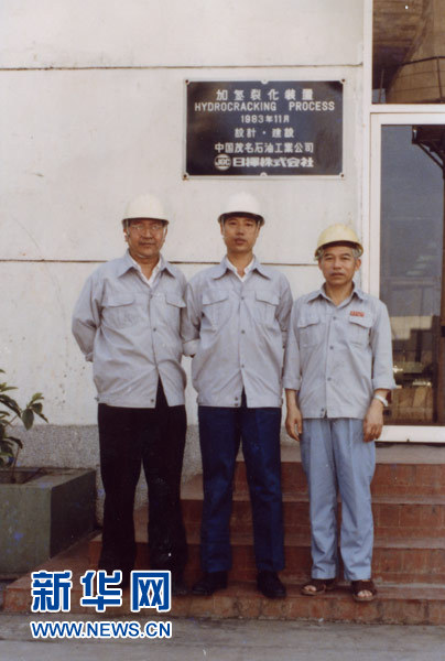 1984年3月9日,张高丽(中)在中国石化总公司茂名石油工业公司炼油厂加氢裂化装置调研。新华社发