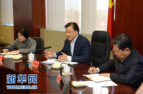12月30日,中共中央政治局常委、中央书记处书记刘云山在北京主持召开调研座谈会,就如何开展好党的群众路线教育实践活动听取党员干部和专家学者的意见。 新华社记者 马占成 摄