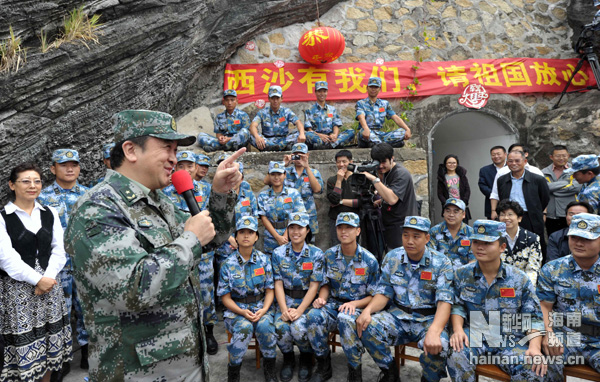 当日,中国文联艺术家文艺小分队来到三沙市永兴岛开展“为人民 送欢乐 下基层”慰问演出,刘兰芳、姜昆、牛群、鞠萍等一大批著名艺术家来到渔民村和海防前哨,为驻岛军民送去新年祝福。新华社记者 赵颖全 摄