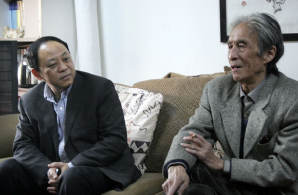 1月6日,中国文联党组副书记、副主席覃志刚看望中国文联荣誉委员、著名书法家欧阳中石。中国文艺网 张亚萌 摄