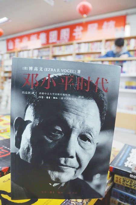 2013年1月23日,山东滨州,市民在新华书店阅读《邓小平时代》。自1月18日新书首发以来,由三联书店推出的《邓小平时代》首印50万册平装本已被经销商订购一空。该书由美国哈佛大学荣休教授、中国问题研究专家傅高义花费10年时间写就,对邓小平跌宕起伏的政治生涯和中国波澜壮阔的改革开放进程进行了全景式描写,出版后引起了社会的广泛关注。