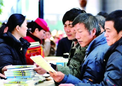 日前,铁路天津站与天津市新闻出版局在候车大厅联合开展“文化年货带回家”惠民赠书活动。 新华社发 杨宝森摄