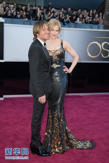 2月24日,在美国好莱坞举行的第85届奥斯卡奖颁奖典礼开始前, 澳大利亚女星妮可·基德曼(右)与丈夫凯斯·厄本亮相红地毯。当天,第85届在好莱坞举行。