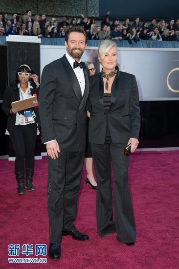 2月24日,在美国好莱坞举行的第85届奥斯卡奖颁奖典礼开始前, 澳大利亚演员休·杰克曼(左)与妻子德博拉·李·弗内斯亮相红地毯。当天,第85届在好莱坞举行。