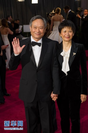 2月24日,在美国好莱坞举行的第85届奥斯卡奖颁奖典礼开始前, 导演李安(左)与妻子林惠嘉亮相红地毯。当天,第85届在好莱坞举行。