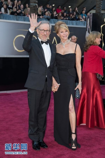2月24日,在美国好莱坞举行的第85届奥斯卡奖颁奖典礼开始前, 导演史蒂文 斯皮尔伯格(左)与妻子凯特 卡普肖亮相红地毯。当天,第85届在好莱坞举行。