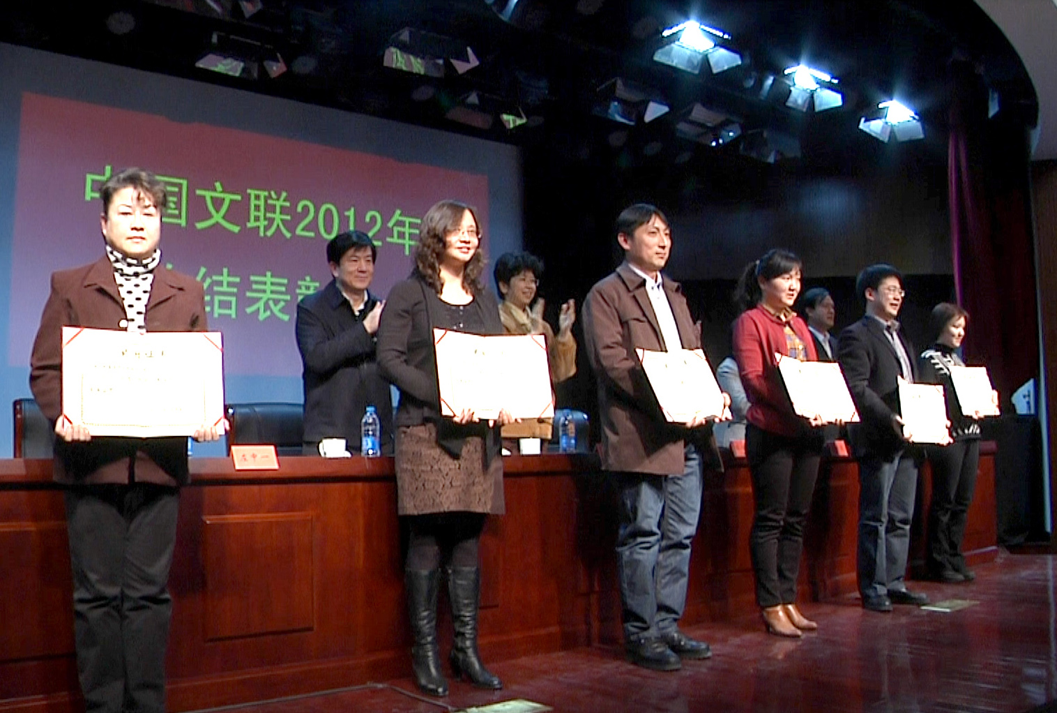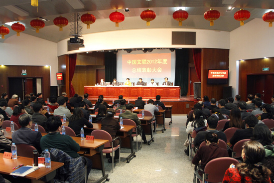 2月25日,中国文联召开2012年度总结表彰大会,总结2012年的工作,表彰在2012年中表现突出的先进集体和个人,对2013年的工作进行部署并提出要求。大会表彰了集体三等功单位1个,集体嘉奖单位23个,17名同志记三等功,147名同志获嘉奖,126名同志获个人表扬,根据有关考核结果确定了9个全国文艺家协会的分党组为好班子。