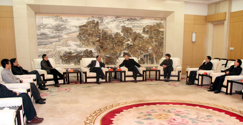 河南省委书记、省人大常委会主任卢展工。河南省委常委、宣传部部长赵素萍会见中国艺术报“走转改”中原行采访团成员 记者 孟祥宁 摄