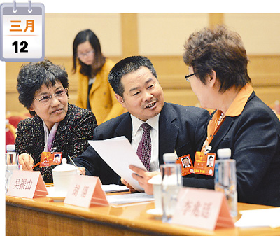 3月12日下午,代表们审议两高报告。