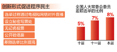以创新的形式促进程序民主。选举过程通过电视和网络对外直播,设立秘密写票处,无记名投票,公开验唱票,差额选举比例提高……
