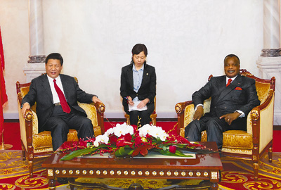 习近平表示,我一踏上刚果国土,就受到刚果政府和人民热情隆重欢迎,体现了两国人民深厚传统友谊。中刚始终真诚相待、友好合作,在涉及对方核心利益的重大问题上坚定地相互支持。明年是中刚建交50周年,希望双方共同努力,深化友好互信,使两国团结互助的全面合作伙伴关系迈上新台阶、实现新跨越。
