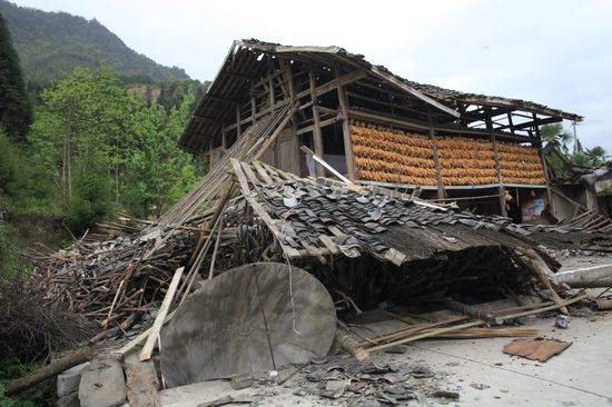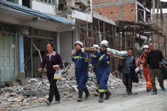 太平乡向外运送伤员 雅安摄协刘南康摄