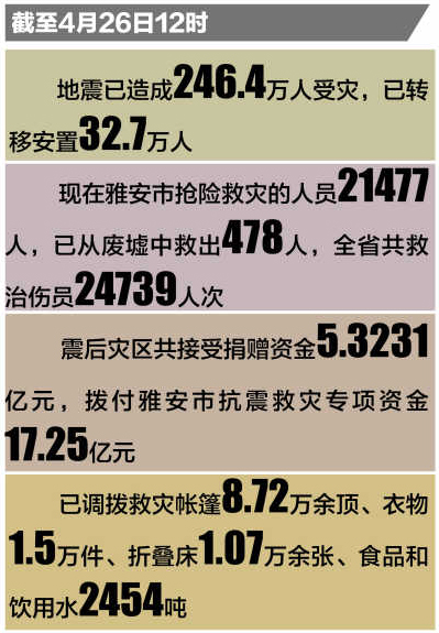 目前,灾区已有98所中小学复课,雅安市普通高中三年级全部复课。