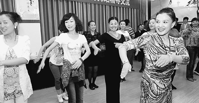 中国文联志愿者陇南武都行,中国舞蹈家协会副主席王小燕(前)对当地舞蹈老师进行舞蹈培训。资料图片
