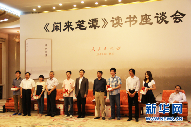 5月21日,人民出版社举办了吴官正同志新著《闲来笔潭》读书座谈会,并向清华大学生学生代表赠送了图书。新华网 王志艳 摄