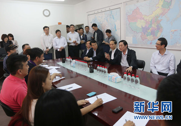 6月8日,中共中央政治局委员、中宣部部长刘奇葆到中央电视台调研春节联欢晚会筹备工作。这是刘奇葆在文艺中心调研时,与电视台主持人、编导人员交谈。新华社记者刘卫兵摄