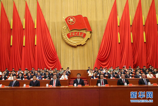 6月17日,中国共产主义青年团第十七次全国代表大会在北京人民大会堂开幕。习近平、李克强、张德江、俞正声、刘云山、王岐山、张高丽等在主席台就座,祝贺大会召开。新华社记者刘卫兵摄