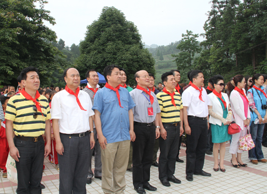志愿服务团在三股水小学观看升旗仪式 云菲 摄