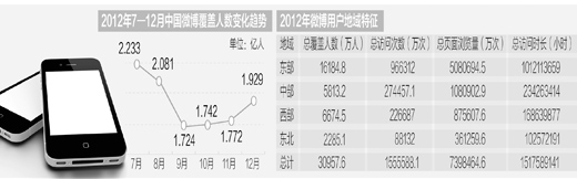 值得注意的变化是,2012年二季度到四季度,新浪微博的用户活跃度下降了近40%;腾讯2013年一季度财报也显示,腾讯微博的日均活跃账户已经从8700万的最高点下降到8100万。微信公众账号“滤镜菲林”的一项调查显示,许多微博用户“以前一天花3个小时刷微博,现在只是睡前刷刷”。