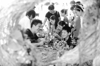 图二:参加文化周活动的游客在体验插花技艺。