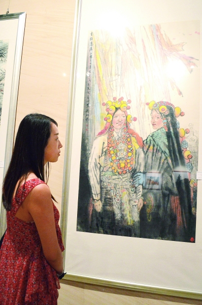 本次展览共展出由兰州艺术家们创作的116件艺术作品,具有鲜明的时代特色和浓郁的中国西部艺术风格。据兰州市文联主席汪小平介绍,兰州文化艺术界鼓励并组织艺术家深入基层,到工厂车间和田间地头汲取创作营养,把手中的笔和镜头同基层紧紧融汇在一起,形成了一股强烈的艺术“西北风”。展出现场,国画作品《吉祥高原》吸引了许多观众驻足欣赏。这幅作品由西北师范大学李葆竹教授在兰州黄河北岸写生创作完成,画面中两位藏族少女神态灵动传神,色彩调配饱和明丽,虚实主次处理精妙,独具浓厚的地方特色和乡土风情。