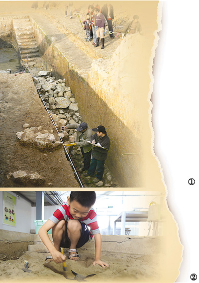 图②:孩子在丹凤门遗址博物馆进行“考古挖掘”。