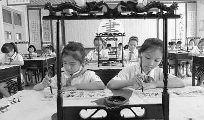 据悉,教育部将在全国范围内推动落实“书法进课堂”,书法教育教材的审订工作预计将于今年11月展开。从2011年起,教育部开始研究设置中小学书法教育课程,并于今年2月正式出台了《中小学书法教育指导纲要》,要求将书法教育纳入中小学教学体系,学生分年龄、分阶段修习硬笔和毛笔书法,各学校从小学三年级起要开设专门的毛笔书法课。教育部将与相关社会团体合作,中国书法家协会也计划组织志愿者进入校园开展书法义务教学活动。
