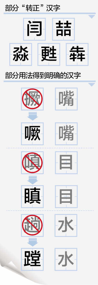 另外,《通用规范汉字表》还有两个附表,分别是《规范字与繁体字、异体字对照表》和《〈通用规范汉字表〉笔画检字表》,这两个字表也别有用途。“附表对于中小学生了解古代文化、港澳台地区以及海外华人社会的交流都有指导意义。”李宇明说。