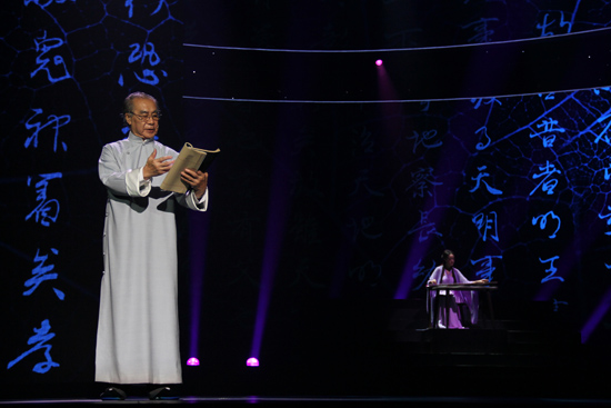 百善孝为先。被视为“孔子述作,垂范将来”的《孝经》,是儒家典籍中最早被称为“经”的伦理学著作,在中华传统美德的形成和发展中的作用不言而喻。此次咏诵会即以《孝经》十八篇为基本依据,运用原文吟诵、叙事朗诵、原创歌曲演唱和情境剧演绎等多种艺术形式,借助多媒体等现代舞台手段,通过序、上篇、下篇、尾声四部分,生动诠释了这部国学经典中的思想精华。