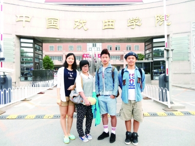 9月3日是中国戏曲学院2013级本科新生开学报到的日子,来自台湾的廖佳妮、李庆虹、徐挺芳、杨瑞宇四位京剧表演专业的学生兴高采烈地踏进校园,并在大门口合影留念,庆贺他们终圆国戏梦。这是中国戏曲学院首次高招录取台湾学生。