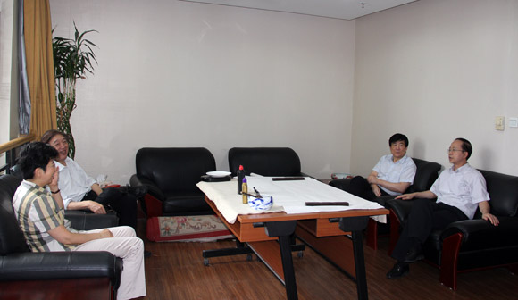 图为赵实、李屹、左中一与冯骥才亲切交流。中国艺术报 乔燕冰 摄