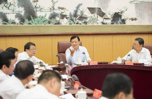 9月13日,中央党的群众路线教育实践活动领导小组在北京召开部分中央督导组工作座谈会。中共中央政治局常委、中央党的群众路线教育实践活动领导小组组长刘云山出席会议并讲话。新华社记者李学仁摄