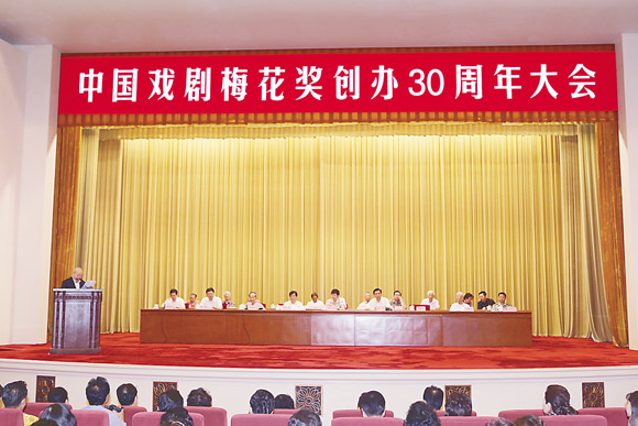 为庆祝梅花奖创办30周年,中国文联、中国剧协在京举办了包括专场演出、纪念大会、研讨会、梅花奖数字电影周、书籍出版等系列活动。活动期间,近500名梅花奖演员齐聚京城。8月31日,《梅花赞》专题晚会在京拉开帷幕。演出秉持公益、惠民作风,邀请了一线工人、战士和农民工等基层民众到场观摩。此外,9月初至9月底,28台来自各地、由梅花奖演员领衔的精彩剧目晋京演出。