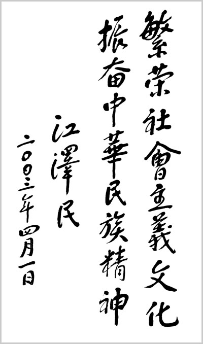 2003年4月,江泽民同志为中国戏剧梅花奖创办20周年纪念活动题词