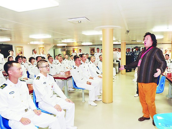 是对海军强大、祖国强大的深切感受,点燃了艺术家们的激情,而艺术家们的激情,又成为一份关爱、一份重托,为海军官兵鼓舞了更加高远的壮志豪情。