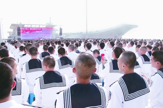 像是一种承诺,更像是一种相约。今天,艺术家在追梦,辽宁舰在追梦,中华民族在追梦。极目远眺,远处的那片深蓝,有我们的强军梦,有我们的中国梦。