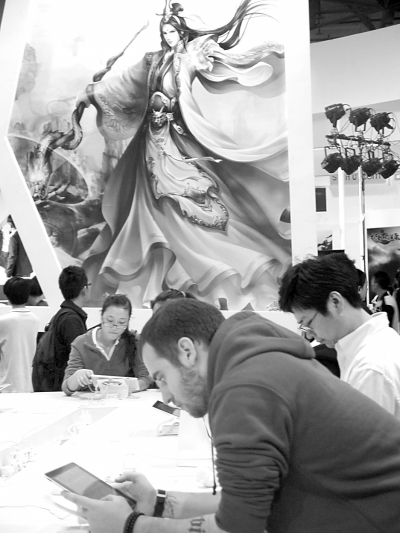 忠实的游戏玩家和靓丽的少女模特构成了第十一届中国国际网络文化博览会的两道风景。本报记者 张蕾摄